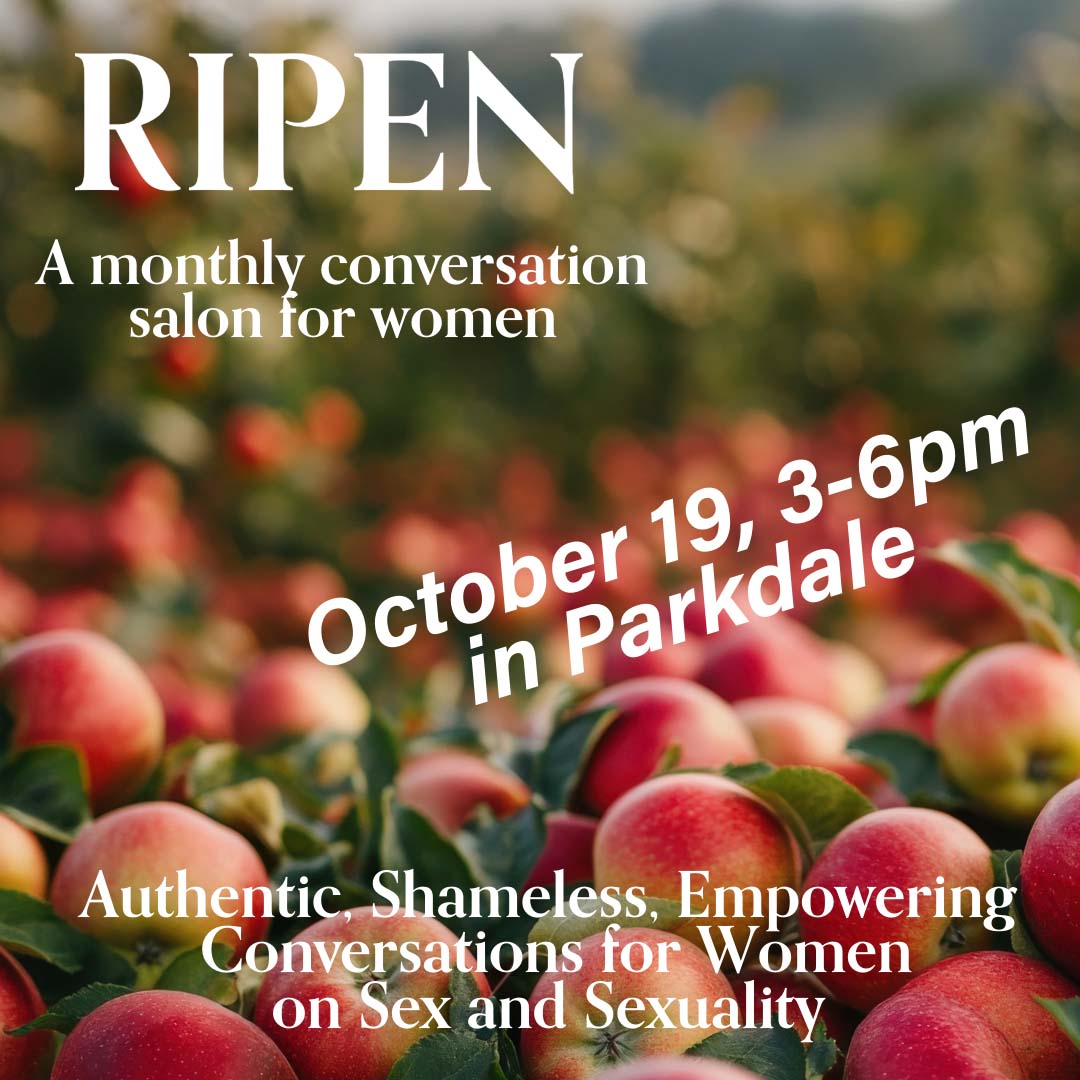 RIPEN, a monthly conversation for women 18+ (femme/non binary/trans) about sex and sexuality, desire, bodies, pleasure, adventure and relationships.
